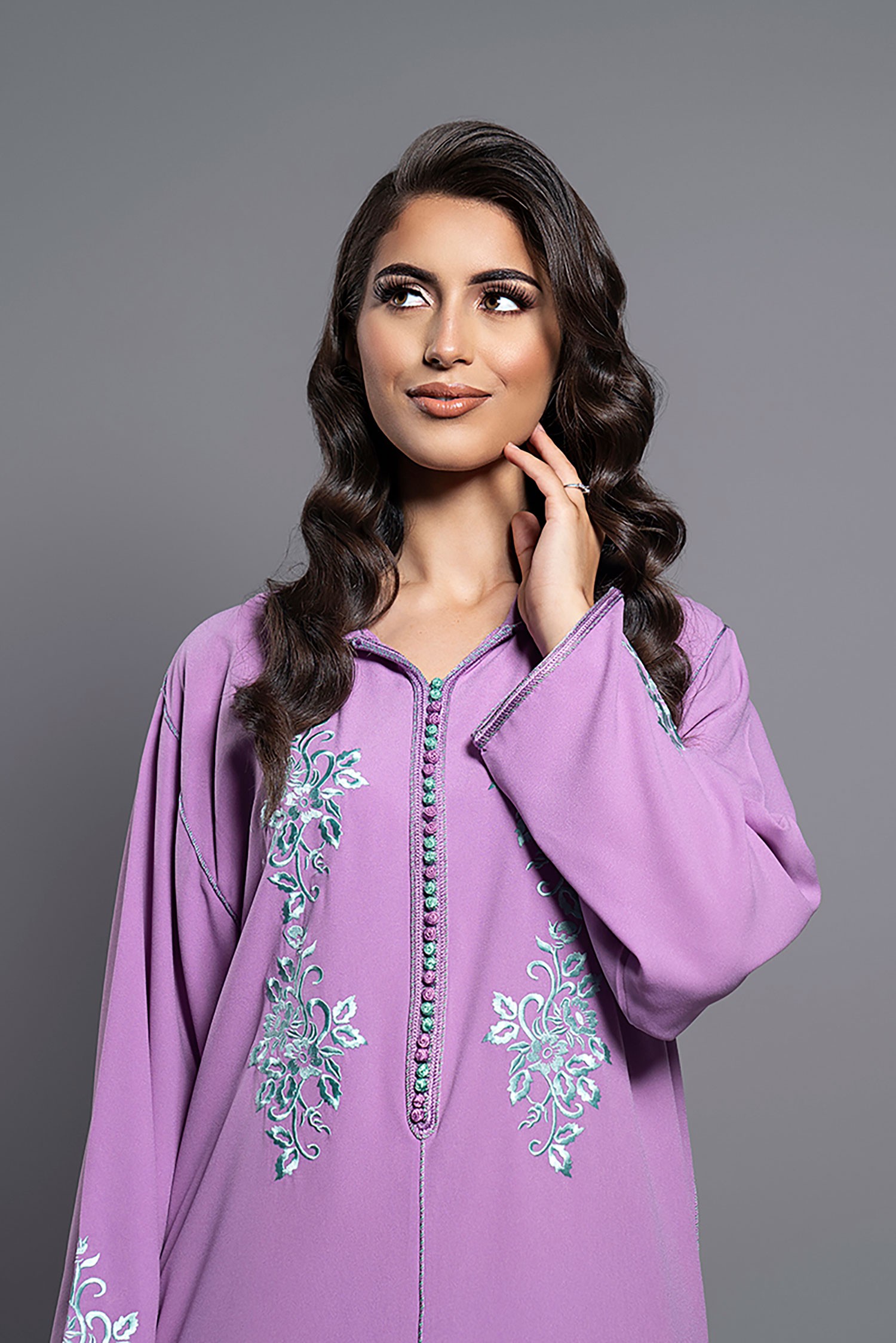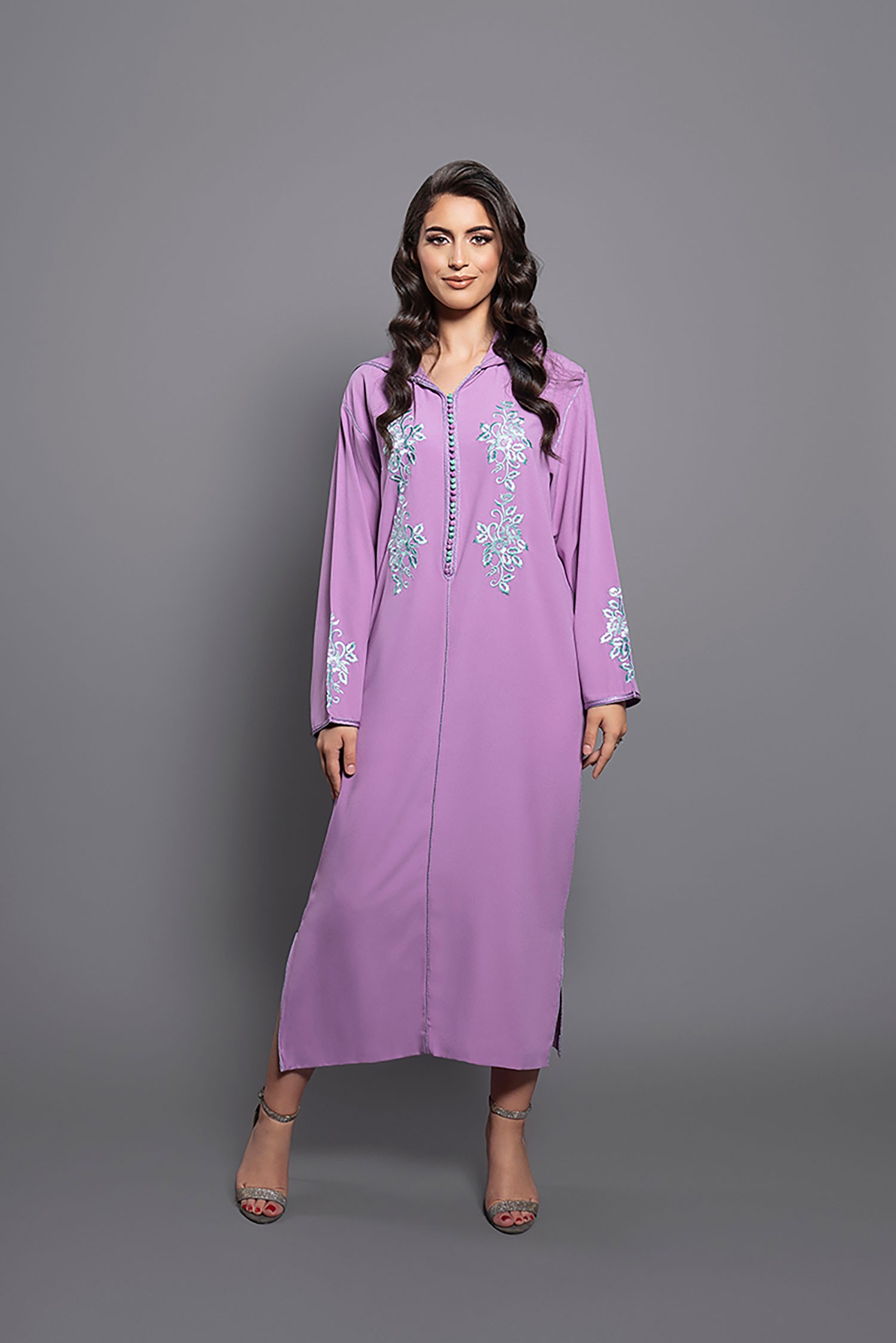 JELLABA MARROQUÍ BORDADO VIOLETA